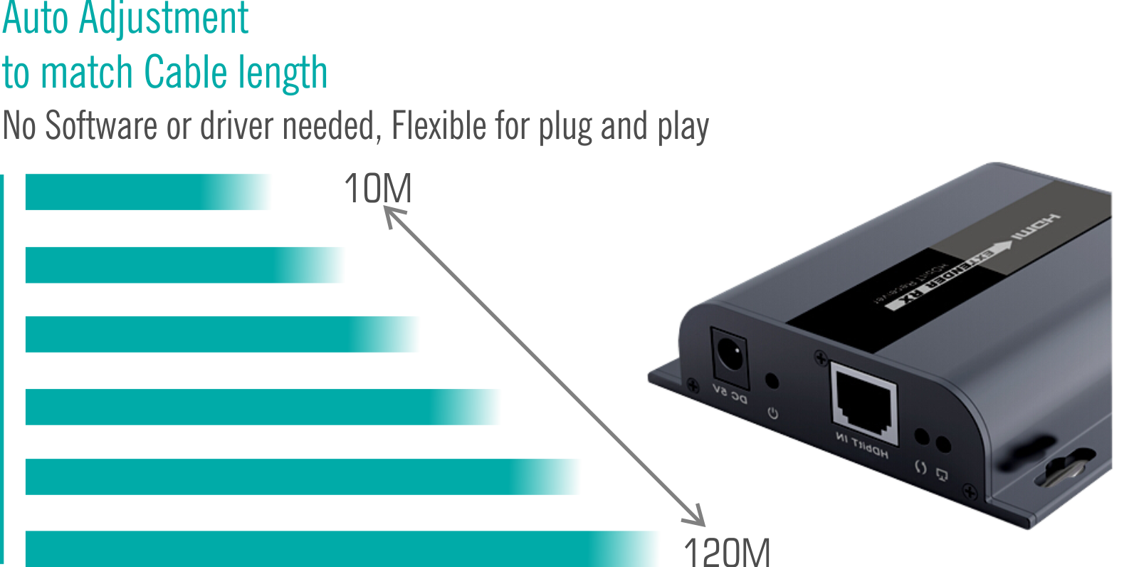 - Distribute HD video over 1 single CAT5e/6 cable for up to 300ft